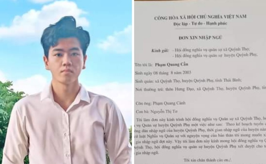 Sau những phút ngỡ ngàng của bạn bè, thầy cô là lời chúc mừng, động viên dành cho Cần khi em nói lời chia tay. Thời điểm ký vào đơn tình nguyện nhập ngũ, Cần còn nhận được sự ủng hộ, chia sẻ của bố mẹ, những người đã dành cả đời yêu thương, bao bọc em.