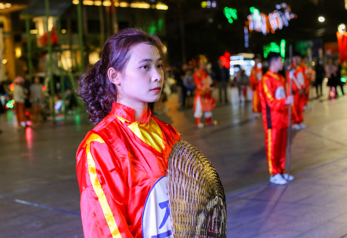 Tối 24/1 tức mùng 3 Tết, cuộc thi biểu diễn Cờ người được tổ chức tại Quảng trường Chiến thắng TP Quy Nhơn (Bình Định). (Ảnh: Nguyễn Dũng)
