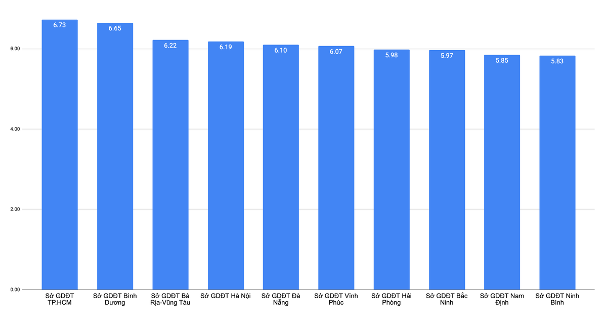 Sau TP.HCM là Bình Dương, Bà Rịa - Vũng Tàu, Hà Nội với mức điểm trung bình lần lượt 6,65, 6,22 và 6,19.