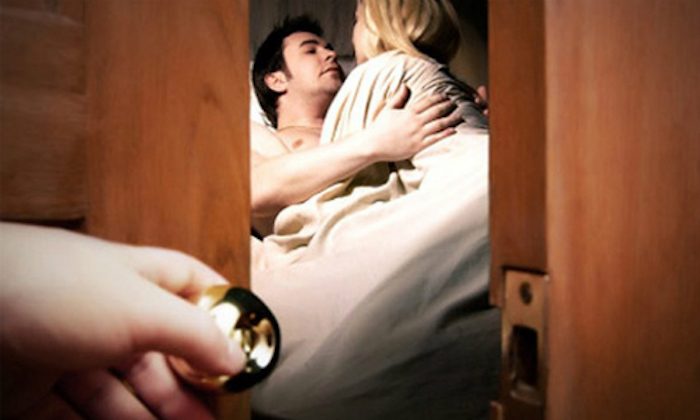 Dứt lời, cô ta nằm xích vào trong, lấy chỗ cho người quản lý. Hơi ngại, nhưng vì muốn chứng minh là căn phòng không có vấn đề gì, ông quản lý cũng lên giường nằm. Đúng lúc đó, cửa phòng bật mở và ông chồng bước vào. Nhìn thấy sự thể, ông tái mặt, rút súng ra và gầm lên: