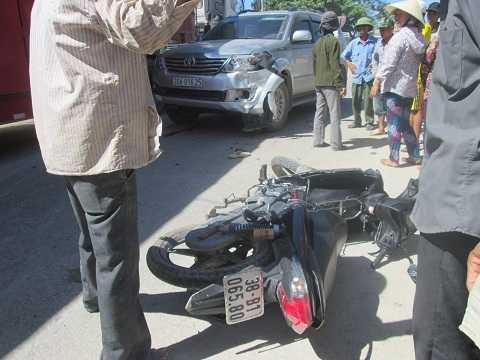Khoảng 10h30 ngày 26/6, trên tuyến QL1A đoạn qua địa bàn xóm 18, xã Quỳnh Lâm (huyện Quỳnh Lưu – Nghệ An) đã xảy ra một vụ tai nạn giữa xe ô tô 7 chỗ 30A-01625 và xe máy 38B1-06580.