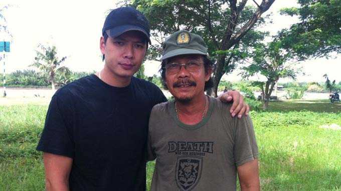 | Ông Lê Minh Phương (trái) chụp ảnh cùng diễn viên, người mẫu Bình Minh. |