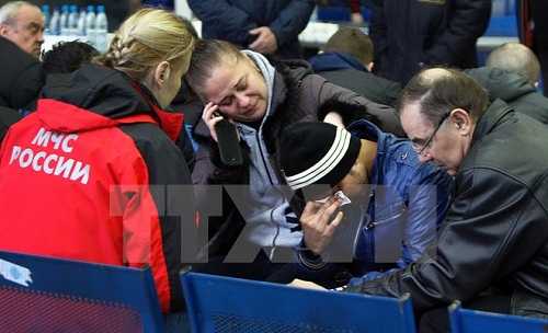 | Nỗi đau của người thân các nạn nhân vụ tai nạn máy bay tại Rostov-on-Don ngày 19/3. (Nguồn: AFP/TTXVN) |