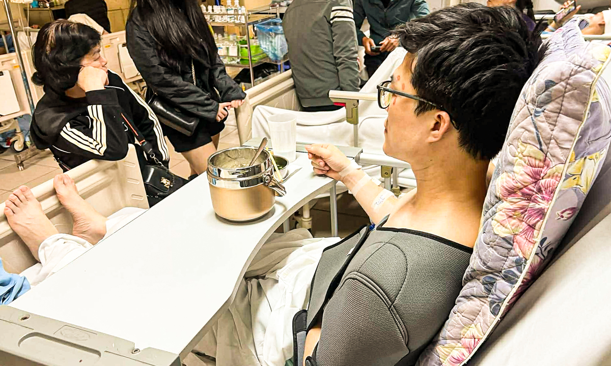 Ngồi lặng lẽ bên giường bệnh, anh T. vẫn chưa hết bàng hoàng khi nhớ lại khoảnh khắc nhận tin dữ về người em trai - một trong những nạn nhân bị thương trong vụ lật xe chở đoàn thiện nguyện ở Lào Cai.