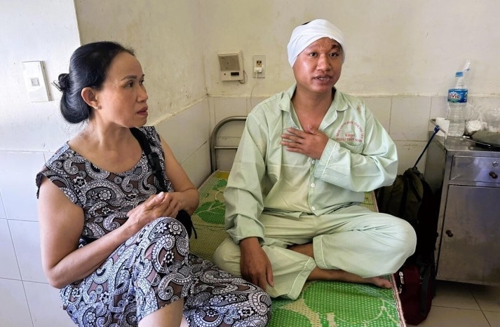 Bà Nguyễn Thị Sáu và con trai chưa hết bàng hoàng sau vụ tai nạn thương tâm giữa hai xe khách đêm 17/6.
