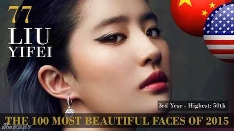 Các minh tinh của Hoa ngữ góp mặt trong bảng xếp hạng gồm có Lưu Diệc Phi đứng thứ 77 và Liễu Nham về hạng 89.