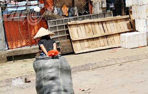 | Bà Phải bảo, một nửa 'xóm cửu vạn' đã phải bỏ trốn về quê hết vì không chịu nổi nắng nóng |