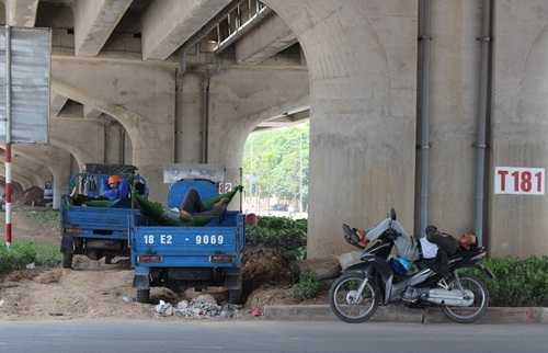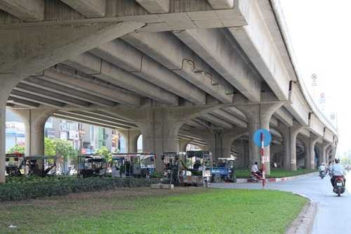 Theo quan sát của PV VTC News, không chỉ có những người lao động như lái xe ôm, lái xe ba gác, công nhân mới tìm đến gầm đường trên cao để trốn nóng, mà những hộ dân hai bên đường cũng tìm đến điểm này để tránh thời tiết oi bức của mùa hè.