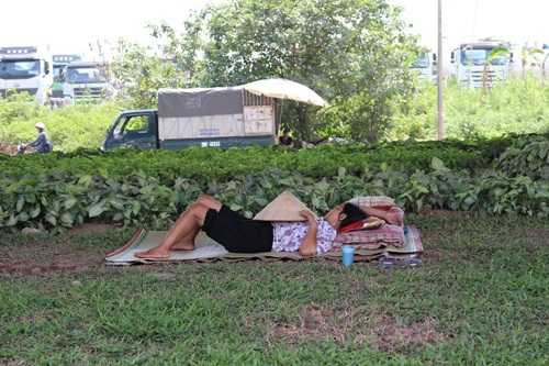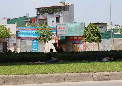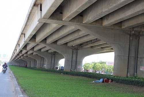 Vào buổi trưa, khi thời tiết nắng nóng lên đến đỉnh điểm, người dân mang ghế xếp, chiếu ra khu vực gầm đường trên cao tìm cho mình một chỗ nghỉ ngơi tránh nóng.
