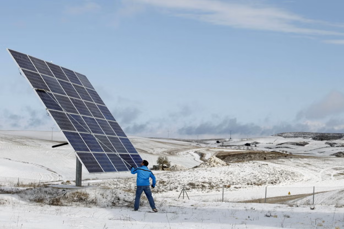 Khai thác năng lượng mặt trời giữa tuyết trắng tại Tây Ban Nha. (Nguồn: AFP)