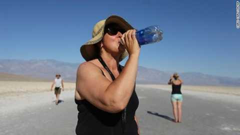 | Du khách người Italia uống nước trong cái nóng chết người ở Thung lũng Tử thần, California |