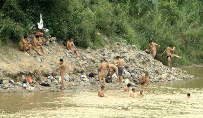 lại có hàng đoàn người rủ nhau đi tắm sông giải nhiệt.