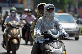 | Người dân đối mặt với nắng nóng (Ảnh: VNE) |