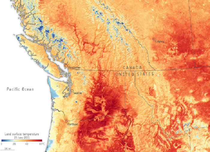 ESA mô tả đợt nắng nóng đang tấn công khu vực tây bắc Mỹ và tây Canada là "đặc biệt tàn khốc" khi các kỷ lục về nhiệt độ liên tục bị phá vỡ và hàng trăm người thiệt mạng.