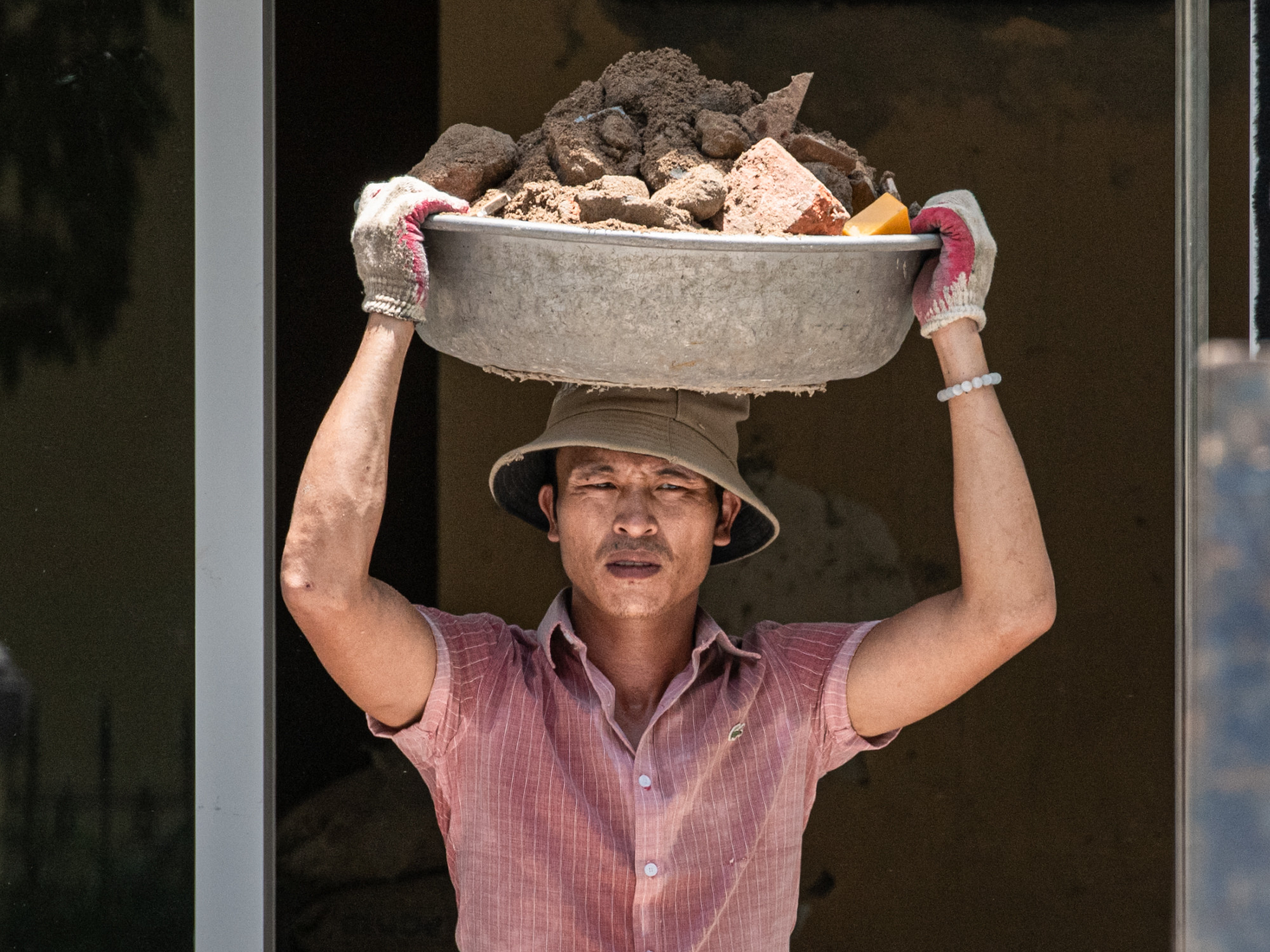 Người lao động oằn mình mưu sinh dưới nắng gắt.