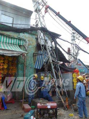 Công ty Điện lực Chợ Lớn đã cử người xuống khắc phục và trồng lại trụ điện mới.