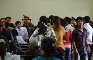 Phía bị hại từ ngỡ ngàng đến không kìm nổi sự nóng giận khiến phiên tòa náo loạn. Đến khi có sự xuất hiện của hàng chục cảnh sát hỗ trợ tư pháp trật tự phòng xử mới được vãn hồi.