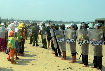 “Cả bãi biển diễn ra một cảnh tượng vô cùng hỗn loạn. Người la, kẻ hét ào ào như đánh trận. Những cục đá và cát bay tới tấp về phía lực lượng chức năng. Tui đứng xem sợ bị vạ lây nên lo chạy đi nơi khác”, một người dân cho biết.