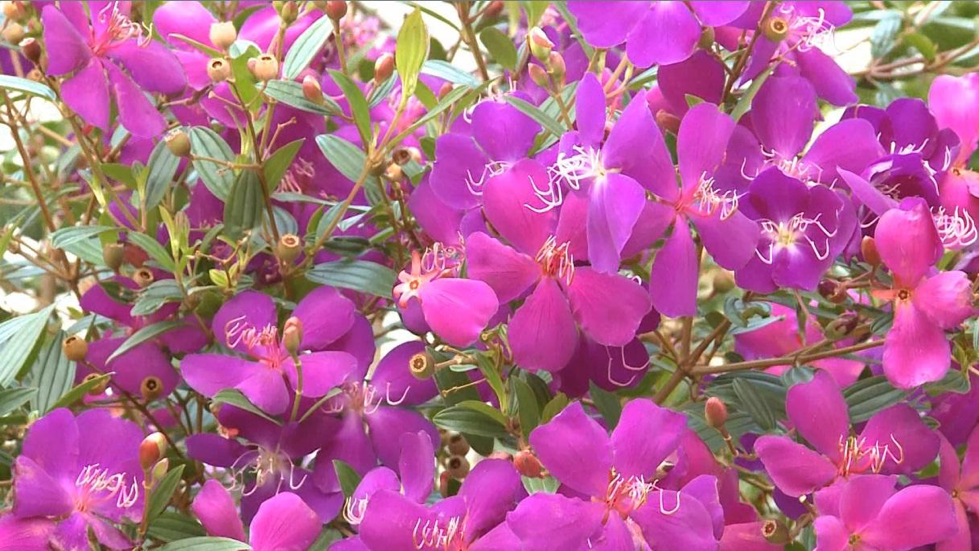 Hoa Mua thuộc họ Melastomafaceae, có 5 cánh và mang sắc tím rất đẹp, hoa có thể nở quanh năm. Từ trước đến nay hoa Mua xuất hiện không nhiều và chỉ được trồng rải rác, kể cả ở Đà Lạt. Nhưng ở đây Hoa Mua được trồng dày đặc với nhiều chủng loại khác nhau. Sắc tím của hoa Mua sẽ khiến du khách cảm thấy thoải mái, thư giãn hơn. Đến đây du khách có thể tha hồ thưởng ngoạn và chụp một vài kiểu hình để làm kỷ niệm cùng với loài hoa biểu trưng cho sự tinh khiết chung thủy này. Màu tím của hoa Mua đã tạo nên một bức tranh kỳ thú, khiến cho những ai có dịp chiêm ngưỡng điều phải òa lên vì thích thú.