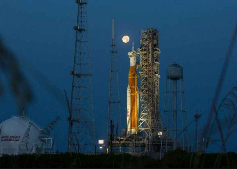 Tên lửa Artemis 1 khổng lồ - bao gồm tàu vũ trụ Orion với sáu người trên Mega Moon , tên lửa siêu mặt trăng của Hệ thống Phóng Không gian (SLS) 30 tầng - đã chuẩn bị thực hiện hành trình đầu tiên trong số hai hành trình thử nghiệm mở đường cho con người hạ cánh lên Mặt trăng vào năm 2026, đánh dấu sự trở lại Mặt trăng lần đầu tiên của con người kể từ năm 1972 và báo hiệu ý định của NASA về việc thiết lập sự hiện diện lâu dài ở đó. Đây là tên lửa mạnh nhất từng được NASA chế tạo.