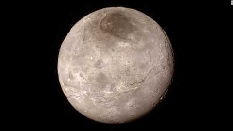 | Charon, vệ tinh lớn nhất của sao Diêm vương, được chụp từ phi thuyền New Horizons của NASA. Charon có đường kính 1.214 km. |