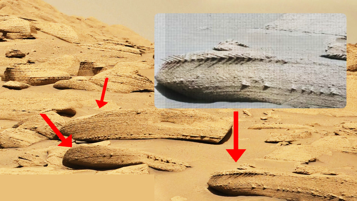 Khi tàu robot tự hành Curiosity Rover đang thám hiểm miệng núi lửa Gale trên Hỏa tinh, thiết bị đã phát hiện ra vật thể lạ. Camera của tàu đã chụp được ảnh vật thể có nét giống một bộ xương hóa thạch đến kinh ngạc. Trong bức ảnh, một phần cấu trúc bộ xương ẩn trong đất, phần còn lại nổi lên trên bề mặt trong lòng miệng núi lửa Gale.