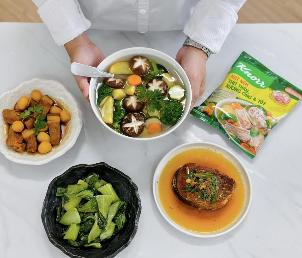“Để đơn giản hóa quá trình nêm nếm và giảm mặn, tôi chỉ dùng hạt nêm Knorr cùng một chút nước mắm với bí kíp bỏ lượng vừa đủ, đồng thời tăng hương vị bằng hành củ, hành lá, chút gốc ngò…”, anh chia sẻ.