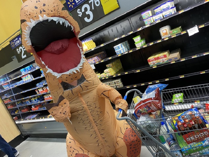 Vào đầu tháng 4/2020, một người đàn ông ở bang Florida, Mỹ mặc bộ đồ khủng long bạo chúa T-Rex để mua sắm tại siêu thị Target. Đoạn video về "chú khủng long" với dáng đi lạch bạch, vui nhộn này sau đó đã được đăng trên trang web của báo Miami Herald.