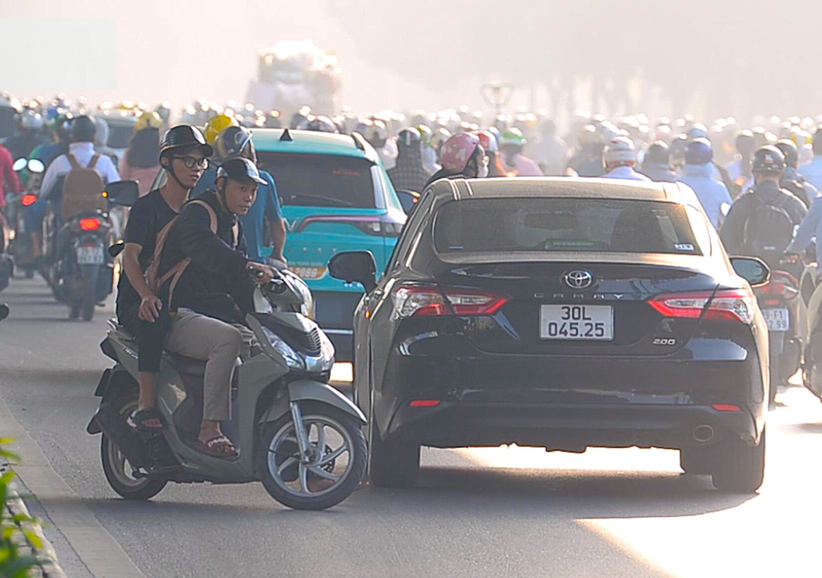 Ghi nhận của PV Báo điện tử VTC News, vào các khung giờ cao điểm buổi sáng và buổi chiều các ngày 30-31/10, tình trạng xe máy đi ngược chiều diễn ra dày đặc. Thậm chí có thời điểm, hàng chục xe máy nối đuôi nhau đi ngược chiều.