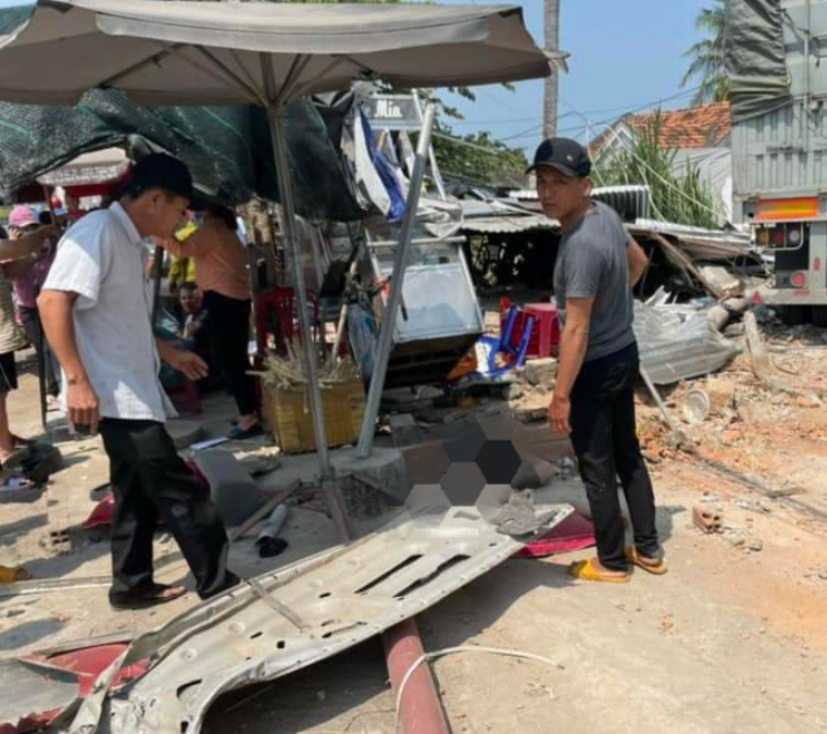 Lúc này, một chiếc xe đầu kéo biển số Quảng Nam chạy phía sau bị bất ngờ nên bẻ lái đâm vào xe tải nhỏ đang đỗ ven đường. Sau đó, xe tiếp tục đâm vào quán nước ven đường có hàng chục người đang ngồi, rồi tông sập một căn nhà.