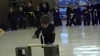 Nể phục phản ứng của bé trai sau khi dùng tay không đập vỡ tấm ván