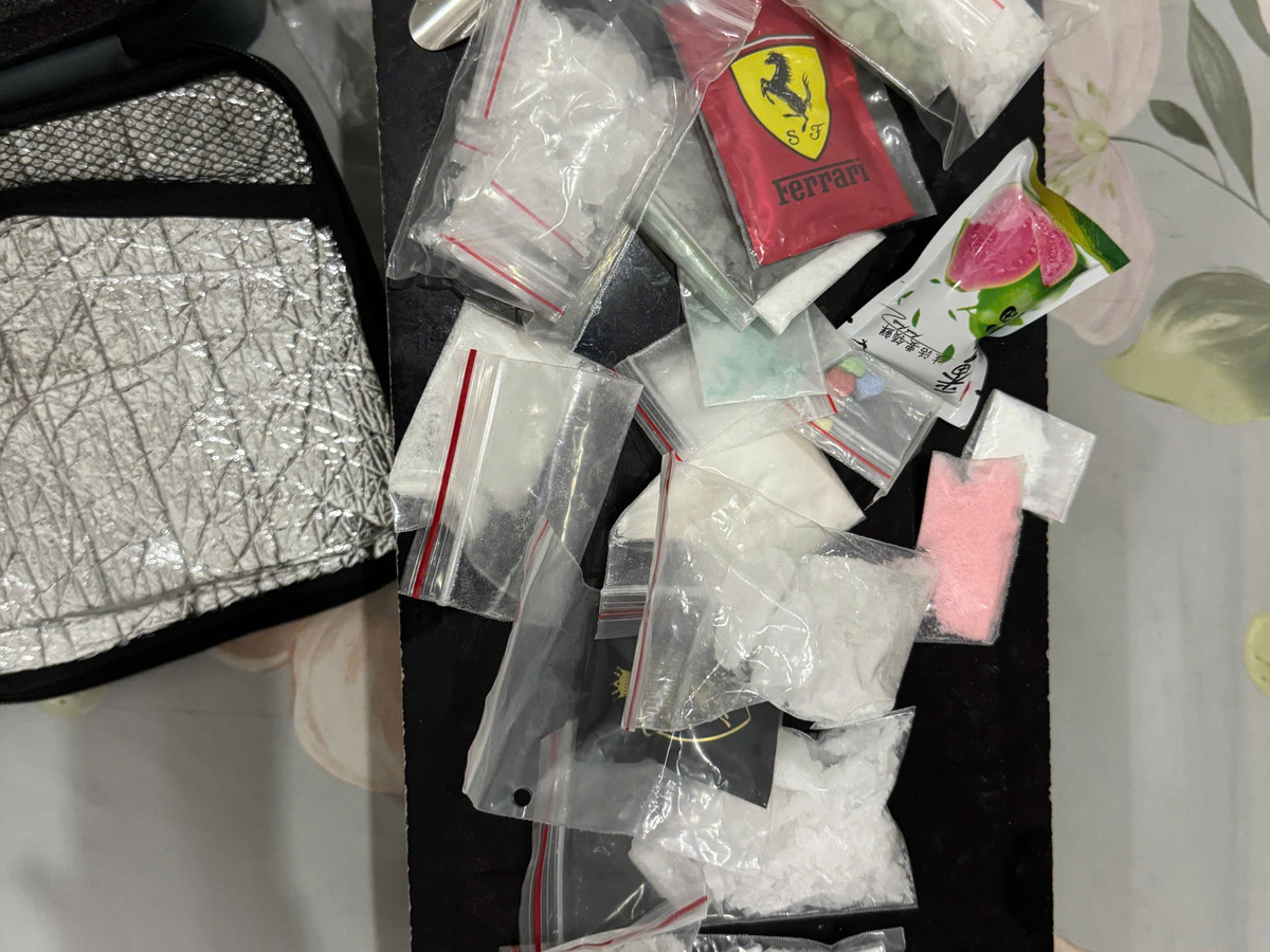 Bên trong vali này, có một vali nhỏ hơn, chứa nhiều túi nilon đựng tinh thể màu trắng, bột màu cam, viên nén và nhiều cân tiểu ly. Kết quả giám định của cơ quan chức năng cho thấy, các chất đựng trong chiếc vali là ma túy, loại ketamine và methamphetamine, tổng trọng lượng gần 2,73kg.
