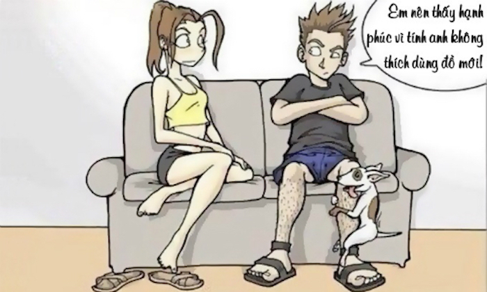 - Vì tính không ham đồ mới nên 10 năm nay anh chỉ yêu có mỗi mình em đó thôi!
