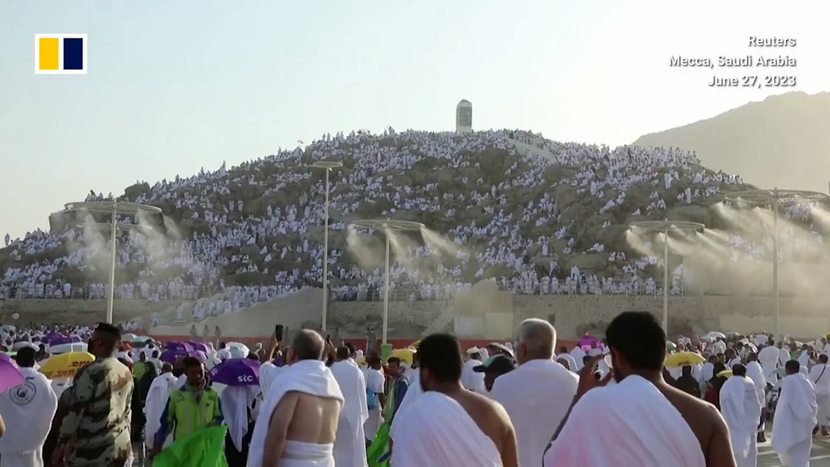 Thành phố Mecca, Ả Rập Xê Út lắp đặt các cột và quạt phun sương treo trên cao, giúp giảm nhiệt cho những người hành hương.
