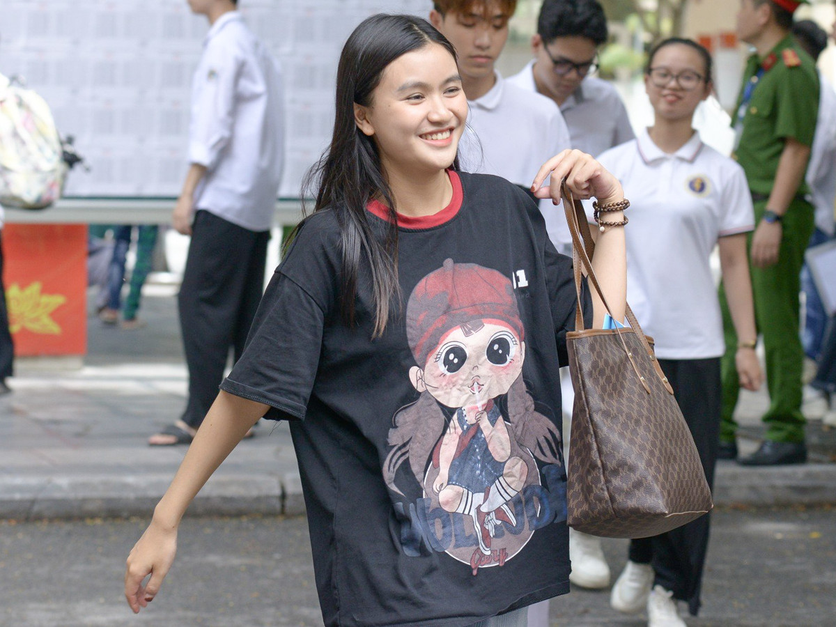Một thí sinh xinh đẹp khác bước ra phòng thi khá sớm. "Em chỉ mất 20 phút để hoàn thành 80% đề thi, thời gian còn lại dành cho các câu hỏi khó, có sự phân hoá cao", nữ sinh nói.