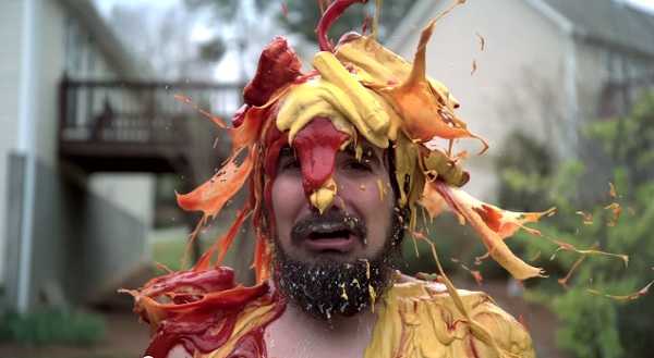 (VTC News) - Đồ ăn trút như mưa xuống đầu chàng trai đang đứng yên, từ bánh, sữa rồi xúc xích, kẹo, mỳ Ý, thịt viên, kem...