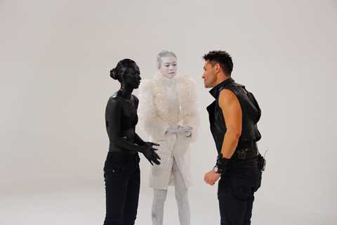 Tuy nhiên, trong phần thi thử thách chụp hình với chủ đề Nụ hôn vĩnh cửu sau đó, Kim Thoa và Mâu Thanh Thủy lại phải bắt cặp cùng nhau. Các thí sinh phải sơn 2 màu trắng, đen đối lập hóa thân thành những nhân tượng để cùng phối hợp tạo dáng chụp ảnh.