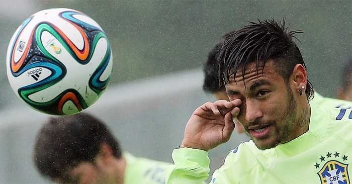 Neymar đầm đìa nước mưa