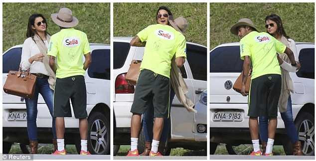 | Hôm qua là buổi tập rất vui với cá nhân Neymar khi bạn gái của anh là nữ diễn viên tuổi teen,Bruna Marquezine cũng tới xem anh tập. |