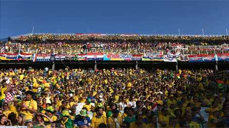 2h15: Các cầu thủ chủ nhà trên đường tới sân vận động. Trước đó ít giờ đồng hồ, chính quyền thành phố Sao Paolo đã đạt được một thỏa thuận là các công nhân tàu điện ngầm Sao Paulo sẽ không đình công trong ngày khai mạc.