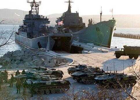 Sáng 14/3, nhiều binh sỹ, xe tải và ít nhất một xe bọc thép chở quân trên tàu đổ bộ cỡ lớn Yamal 156 của Nga được nói là đã cập bến tại vịnh Kazachaya gần Sevastopol, nơi có sự hiện diện của Hạm đội Biển Đen Nga.
