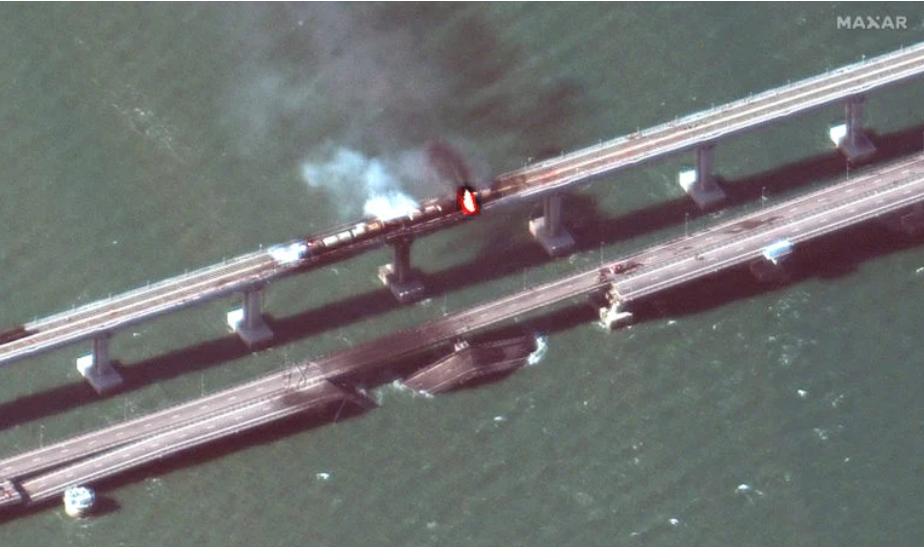 Trước đó, sáng 8/10, một xe tải phát nổ trên cầu tại Crimea, làm sập hai phần đường đi về phía đông và làm bốc cháy đoàn tàu chở các thùng nhiên liệu trên đường sắt liền kề của cây cầu. Hậu quả của vụ nổ làm 4 người thiệt mạng.