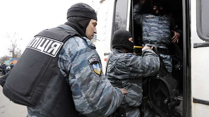 Theo RT, những nhân viên thuộc lực lượng Berkut đang bị đe dọa bởi đám đông sau khi bị chính phủ giải tán.