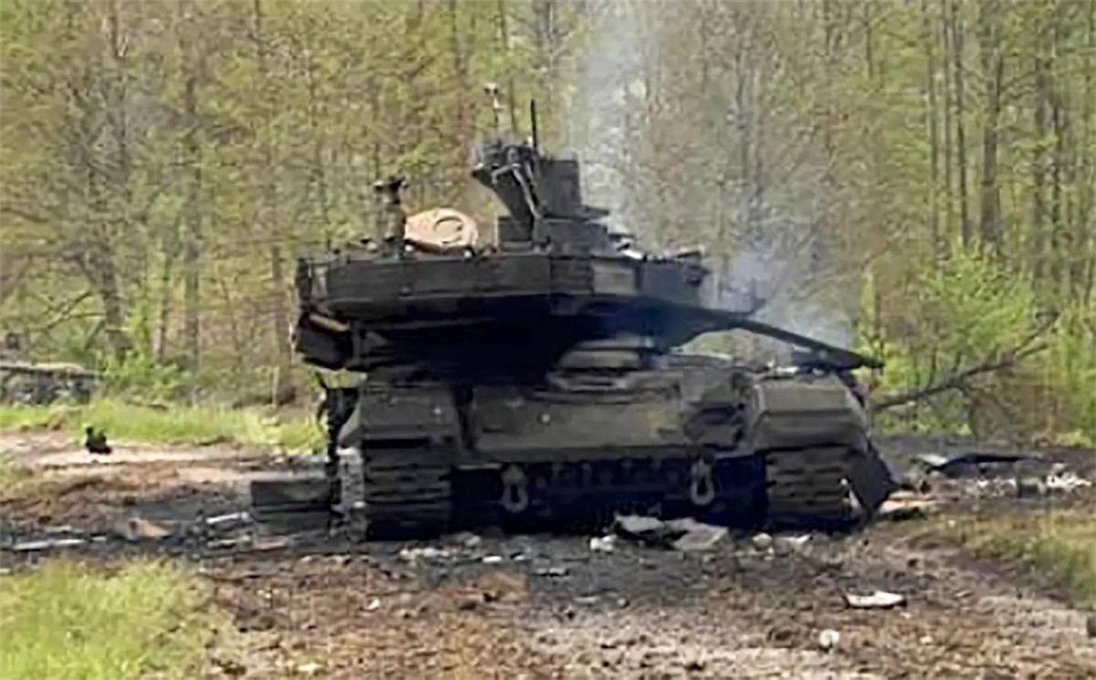 Cũng theo Andriy Tsaplienko, bức ảnh trên được chụp vào ngày 4/5, chiếc T-90 cháy đen và hư hỏng nặng. Dựa trên một số chi tiết trên tháp pháo các chuyên gia của The Drive cho rằng đây là T-90M.
