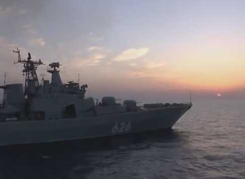 (VTC News) - Hải quân Nga đưa tàu khu trục diệt ngầm thuộc lớp Udaloy đến bờ biển Syria để hỗ trợ các tàu chiến Nga đang làm nhiệm vụ ở biển Địa Trung Hải.
