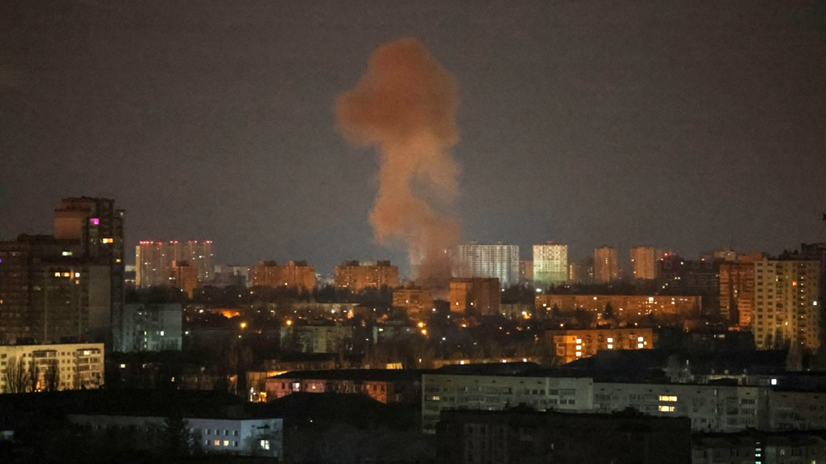 Nhiều nơi tại thủ đô Kiev chìm trong khói lửa vào rạng sáng 25/11 (Ảnh: Reuters)
