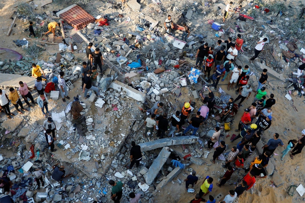 Nhiều ngôi nhà bị san phẳng sau một vụ không kích của Israel vào Khan Younis, miền nam Dải Gaza. (Ảnh: Reuters)