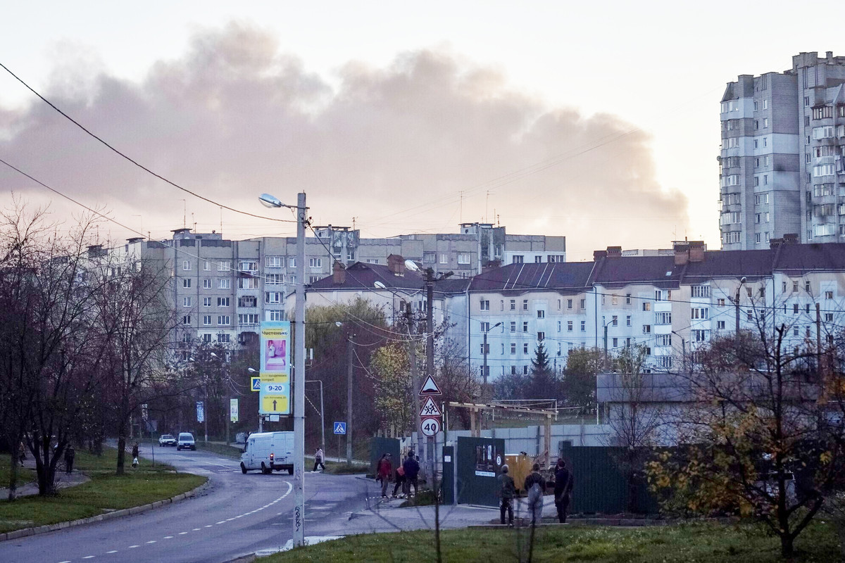 Hình ảnh khói bốc lên sau cuộc tấn công bằng tên lửa của Nga vào thành phố phía tây Ukraine. (Ảnh: Reuters).