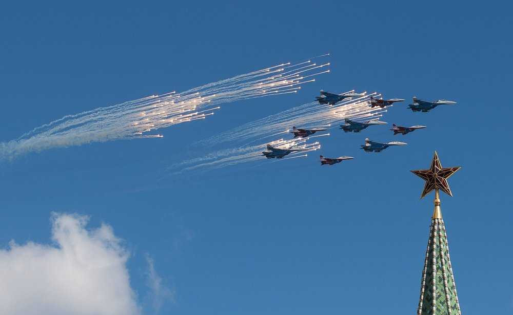 Đội hình bay gồm Su-34, Su-27 và MiG-29