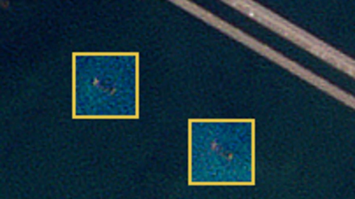 Hình ảnh vệ tinh cho thấy một số con tàu bị chìm quanh cầu Crimea. (Ảnh: Sky News)